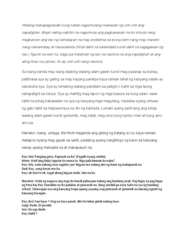 Maikling kwento tungkol sa kalikasan at wika ng pilipino. Maidaragdag din sa mga sangkap ng dula ang set kostyum make-up lighting at stage directionNgunit dapat tandaang hindi sapat na alam lang ng manunulat ang mga sangkap sa pagsulat ng dulang iisahing yugto. Dula dulaan script tungkol sa pamilya maikling 2018.
