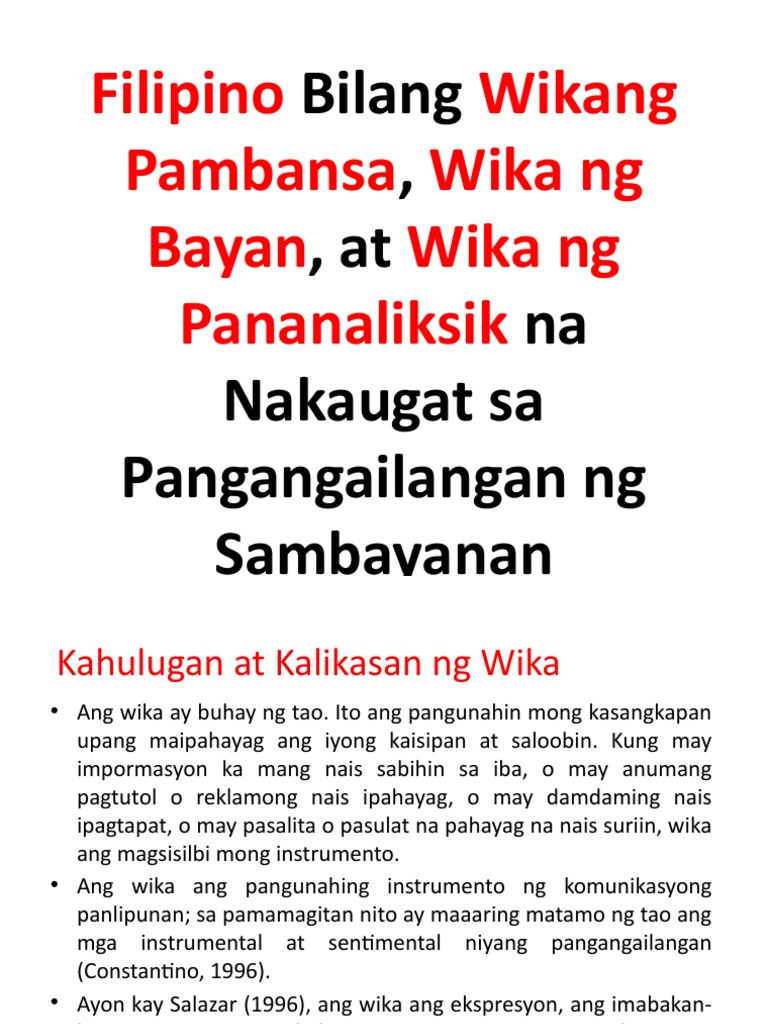 M ula sa mga tinuran ng nabanggit na mga dalubhasa tungkol sa wika mapatototohanan na sadyang mahalaga ang wika at kakabit na ito ng pakikipag-ugnayan ng tao sa kaniyang kapuwa tao at ng bawat bansa sa daigdig. View INTRO-REVIEWERpdf from ENGLISH ENGLISH LI at Polytechnic University of the Philippines. Mga katangian at kalikasan ng manwal.