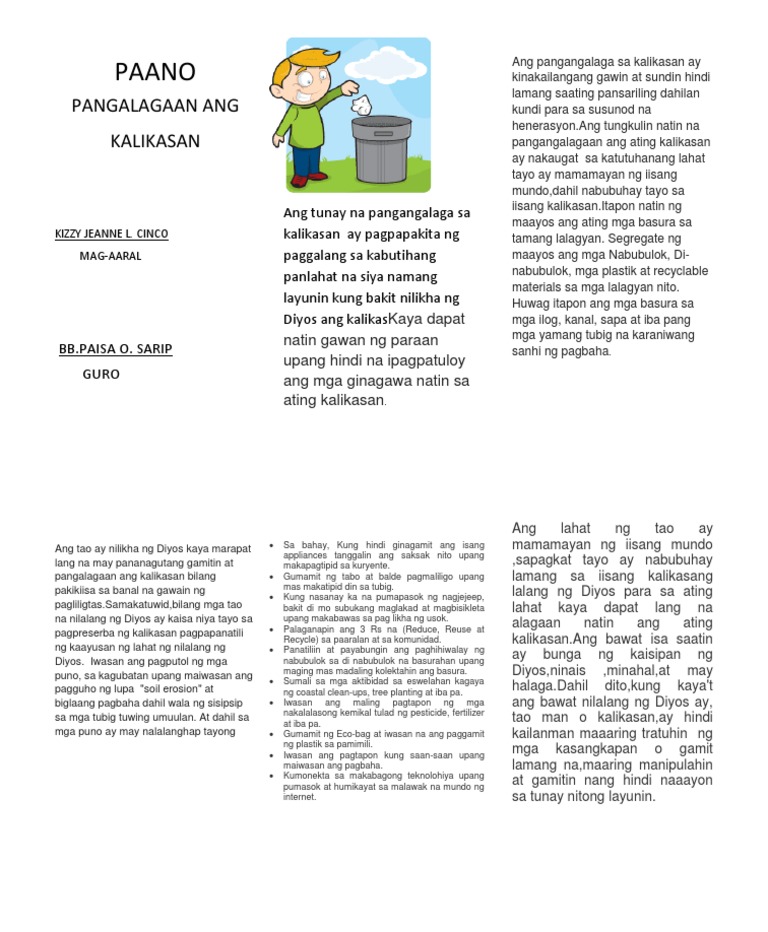 Puso man ay masaktan Huwag lang ang Kalikasan. Paano Mapapangalagaan Ang Kalikasan Essay free book report forms elementary teacher job. Kung maari ay suwayin din natin ang iba kung sila ay nakaka apekto sa paligidturuan natin ang ating mga kapatid at magulang tungkol sa pangangalaga ng kapaligiran.